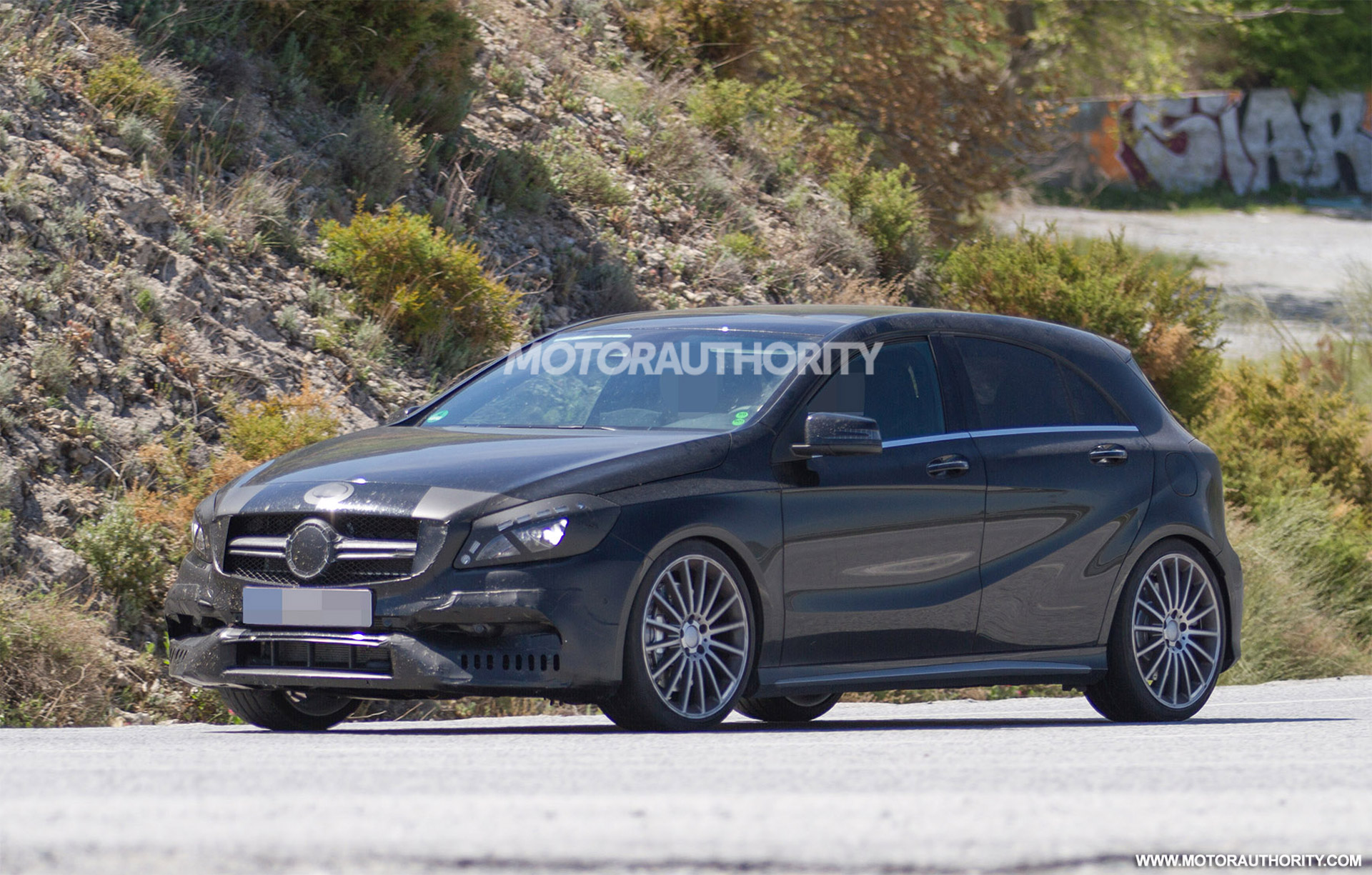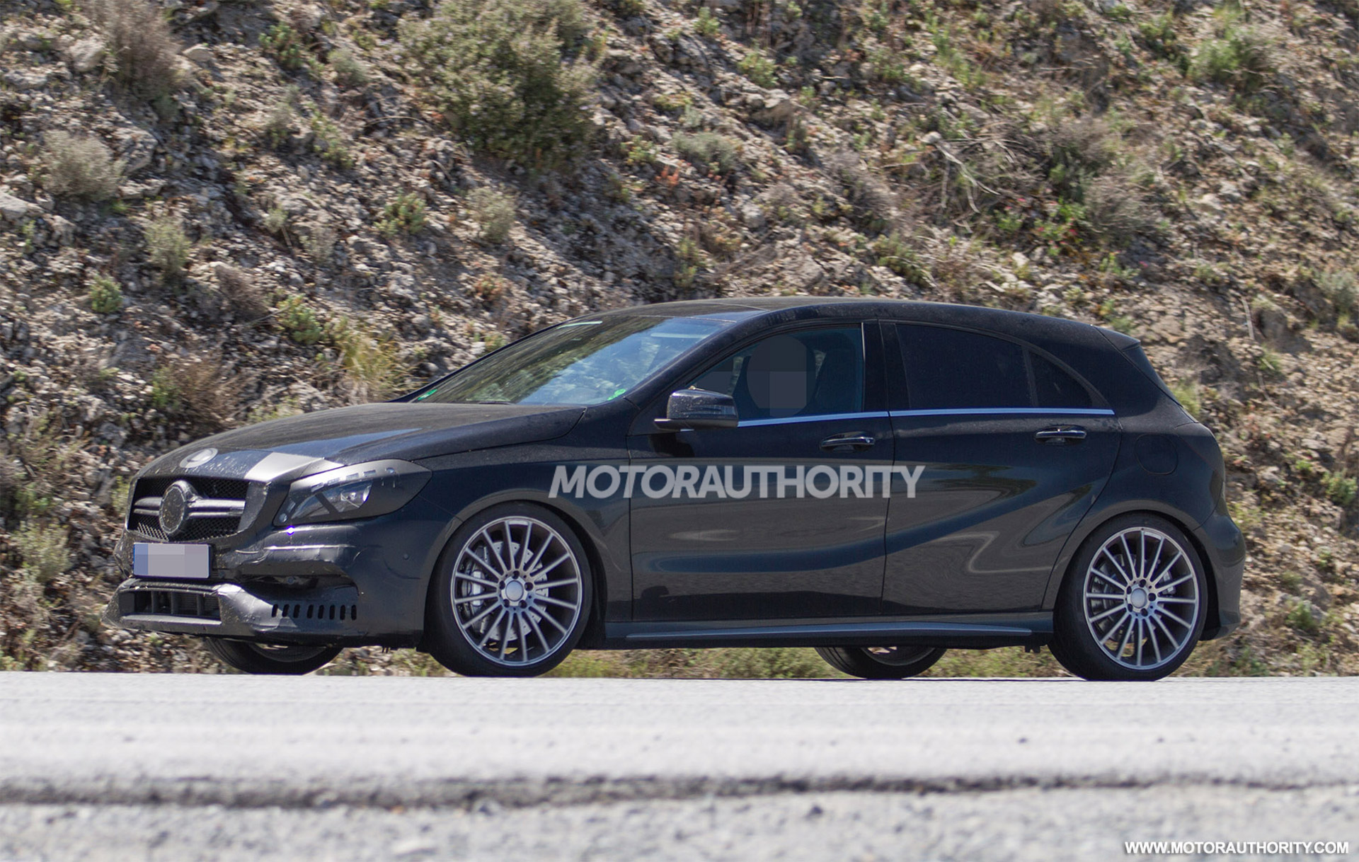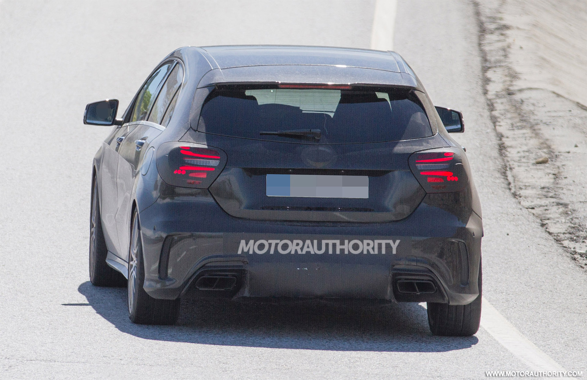 The 2016 Mercedes-AMG A45 is wrapped in camouflage at the front and rear end, meaning that the body style will receive some changes, like the new front bumper with wider intakes, the “A-wing” splitter, while the lights and the grille will be restyled as well. Inside, the model is also set to come with some updates for the central display screen.