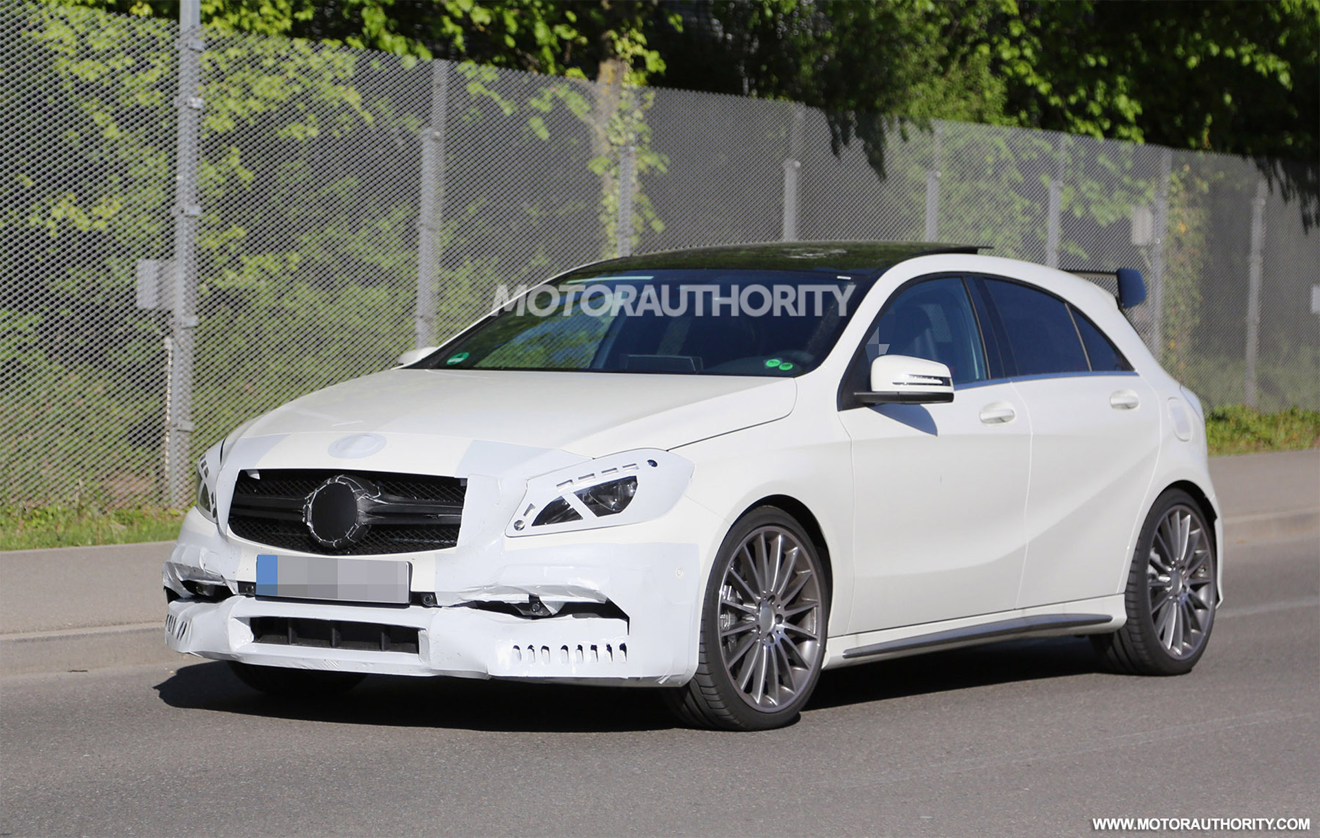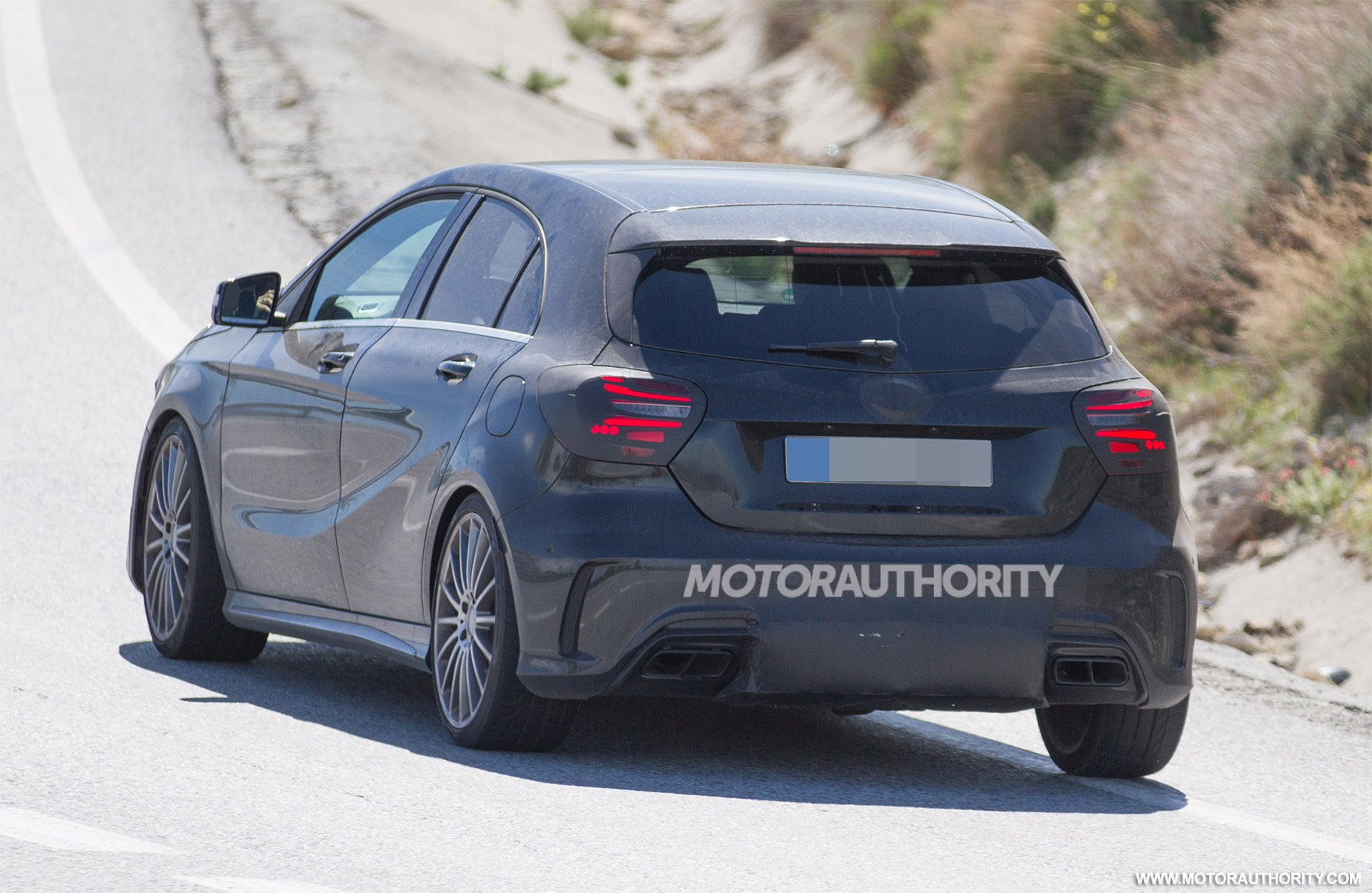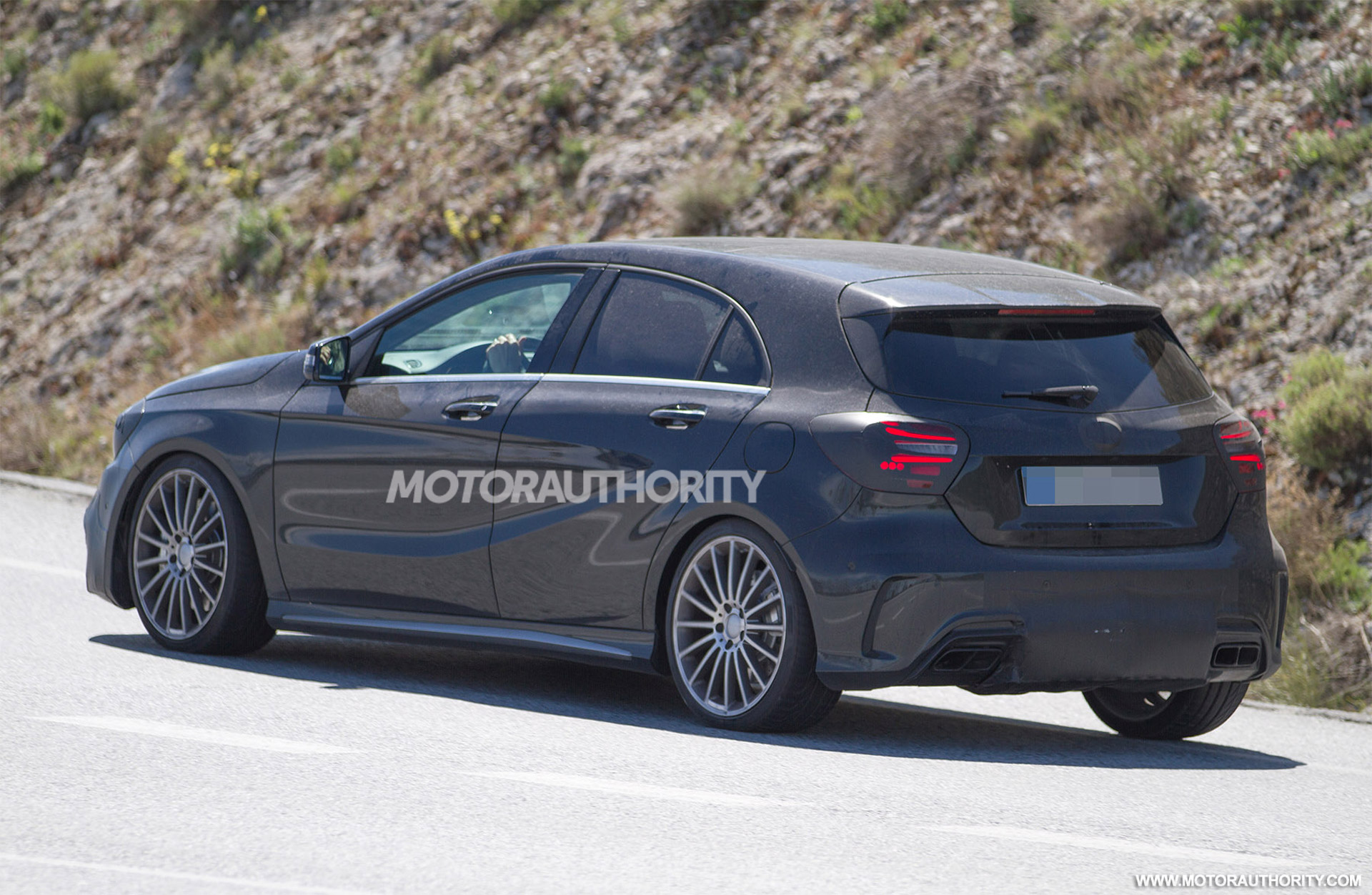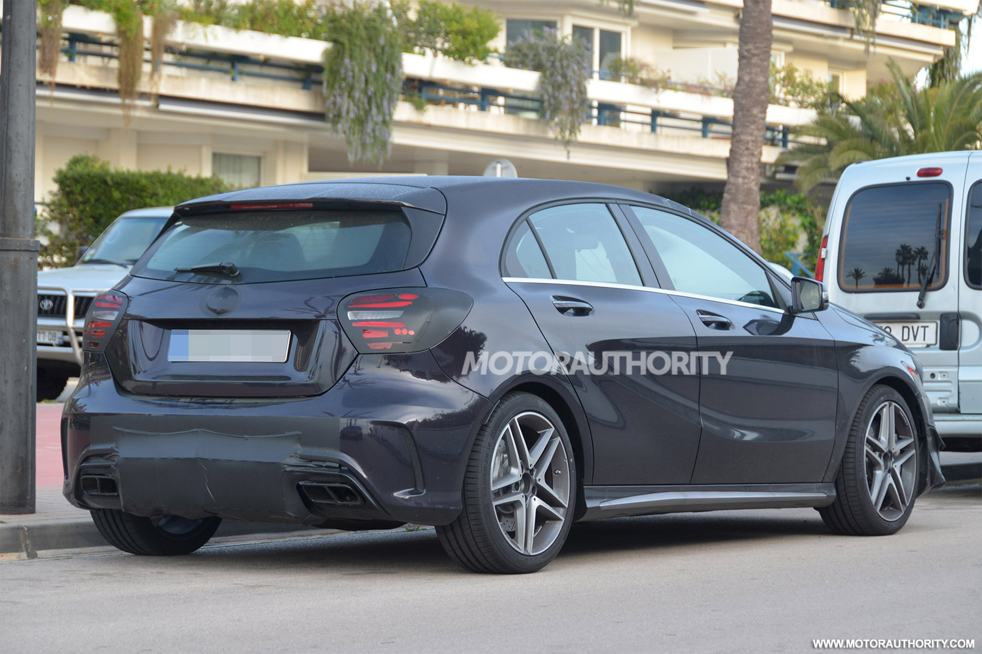The 2016 Mercedes-AMG A45 is wrapped in camouflage at the front and rear end, meaning that the body style will receive some changes, like the new front bumper with wider intakes, the “A-wing” splitter, while the lights and the grille will be restyled as well. Inside, the model is also set to come with some updates for the central display screen.